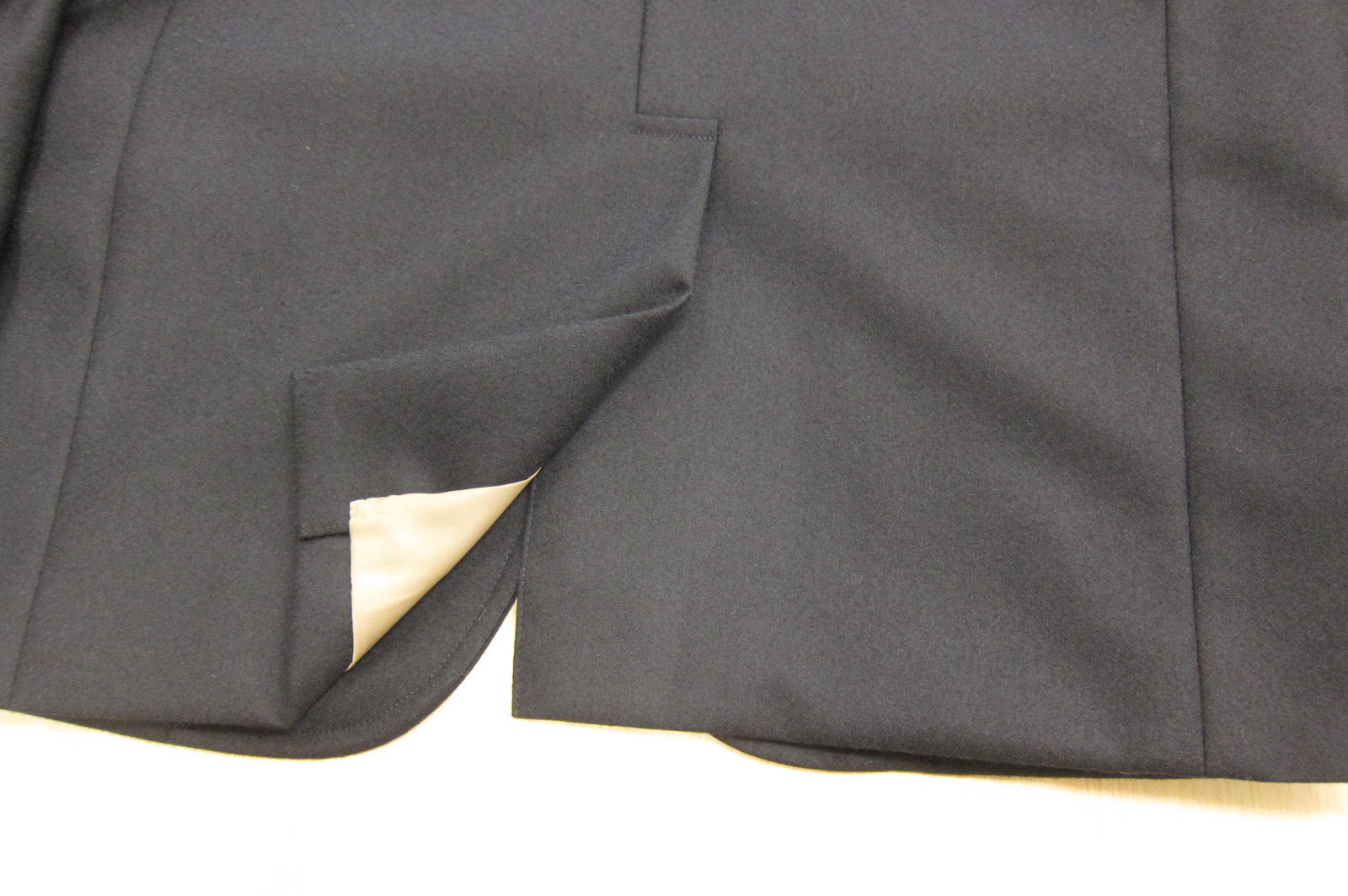 写真のようなディテールですが、大きな特徴としては、脇のダーツがない寸胴モデル、そして後ろ姿がフックベント、であります。