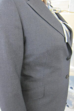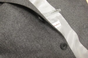 既製服ではサイズ合わせが難しいIさんですので、スーツを作りたい、というお話を頂戴して、一年越しでようやく実現した一着です。生地は葛利のナチュラルストレッチ毛100%・チャコール、これは当店でもかなりの着数を売っているロングセラーです。