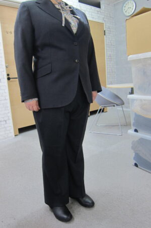 レディスは男の私には採寸がとても難しく、また、それ用のゲージサンプルも作っていないことから、レディスのスーツの注文には、アルデックスから専門のフィッターとゲージサンプル数着を手配するのですが、今回は、Iさんと私で静岡から豊橋のファクトリーまで赴き、採寸と工場見学を実施しました。