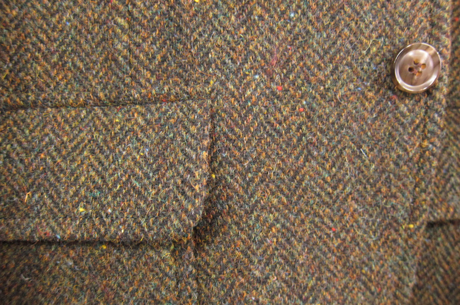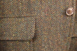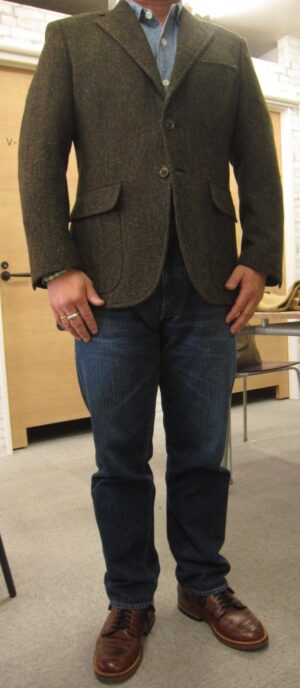 富士市のIさん。廃番でバラケに入っていたハリスツイード、グリーンを主体にしたカントリータッチのヘリンボーンです。パッチ&フラップの脇ポケットがツイードには合いますね。