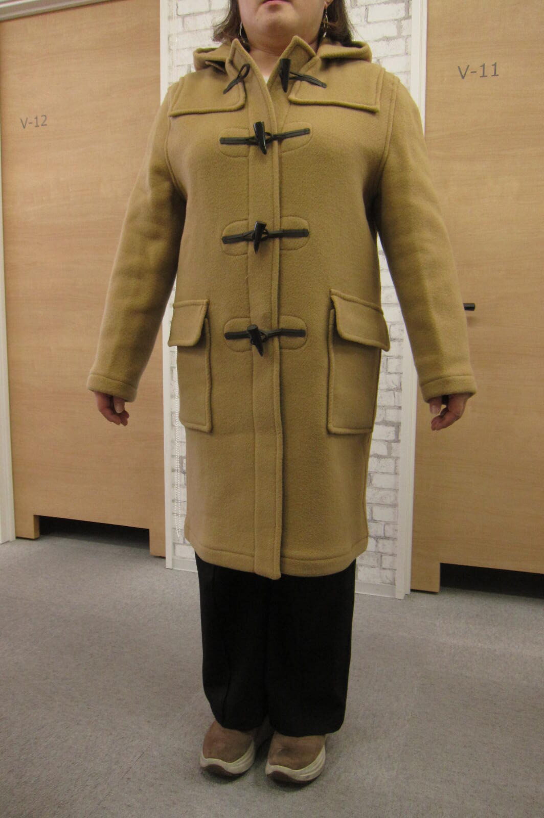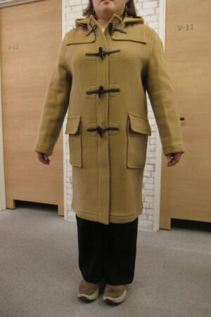 磐田市Nさん。レディスのダッフルコートです。グローヴァオールの英国コレクションの中から選びました。キャメル色のとても軽い生地です。欧州サイズが適しているNさんですので、ご要望にお応えできてよかったです。