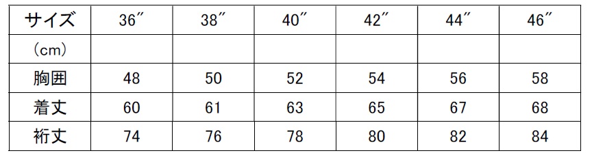 (注:裄丈は首の後ろのO点から袖口までの直線距離。シャツの裄丈とは異なります)