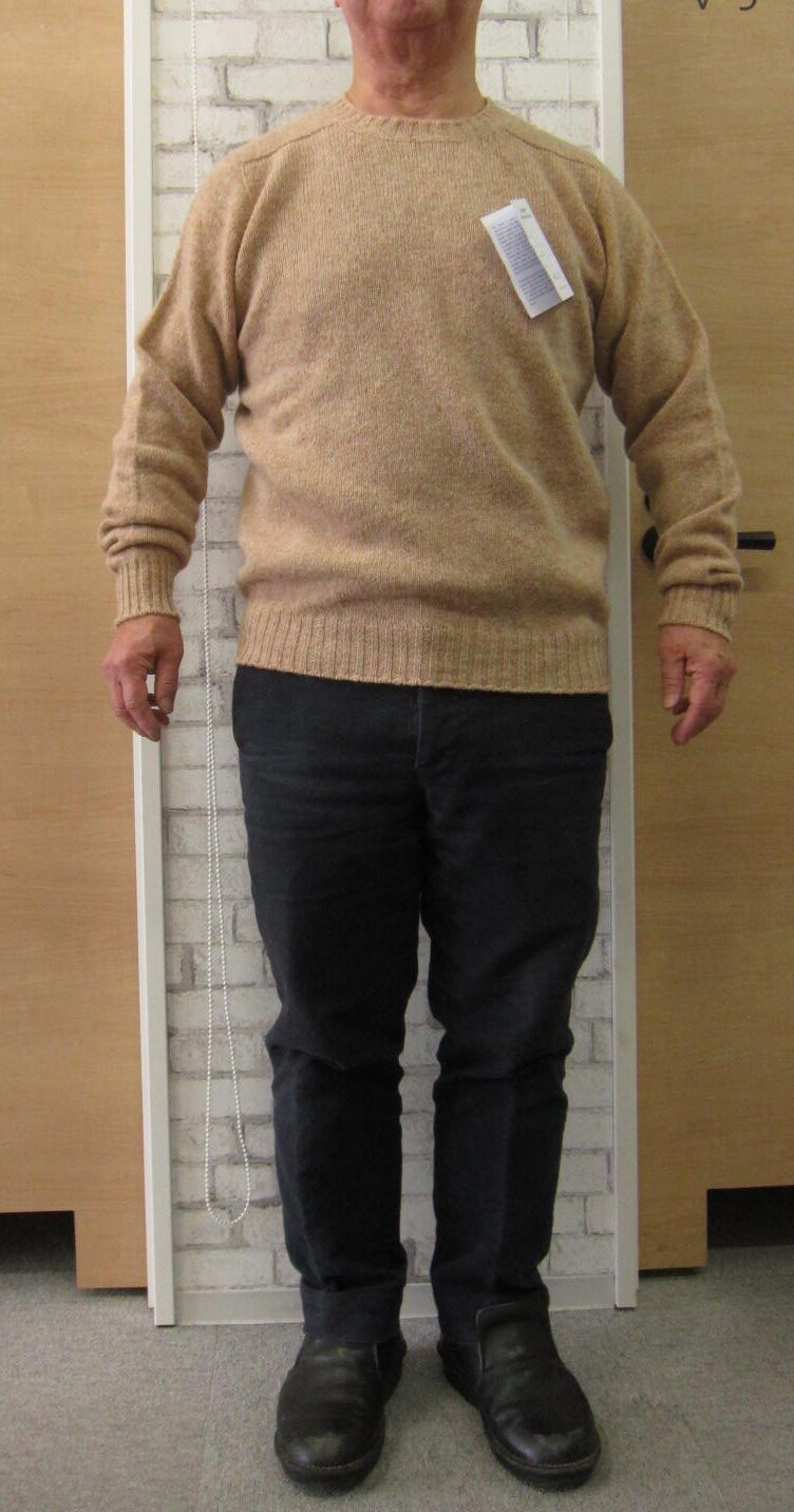 私・野沢のプロフィールは、年齢68歳、身長164cm、体重70kg,胸囲98cm、ウエスト88cm、首が長くなで肩で胴長、腕は短くシャツの裄丈で78cmです。