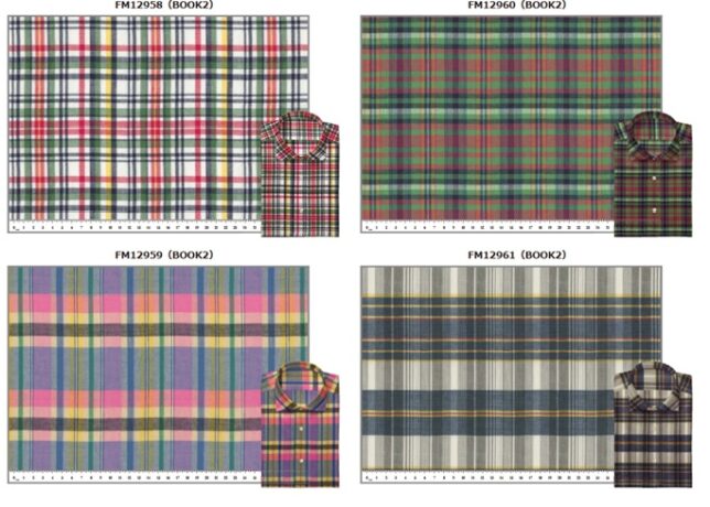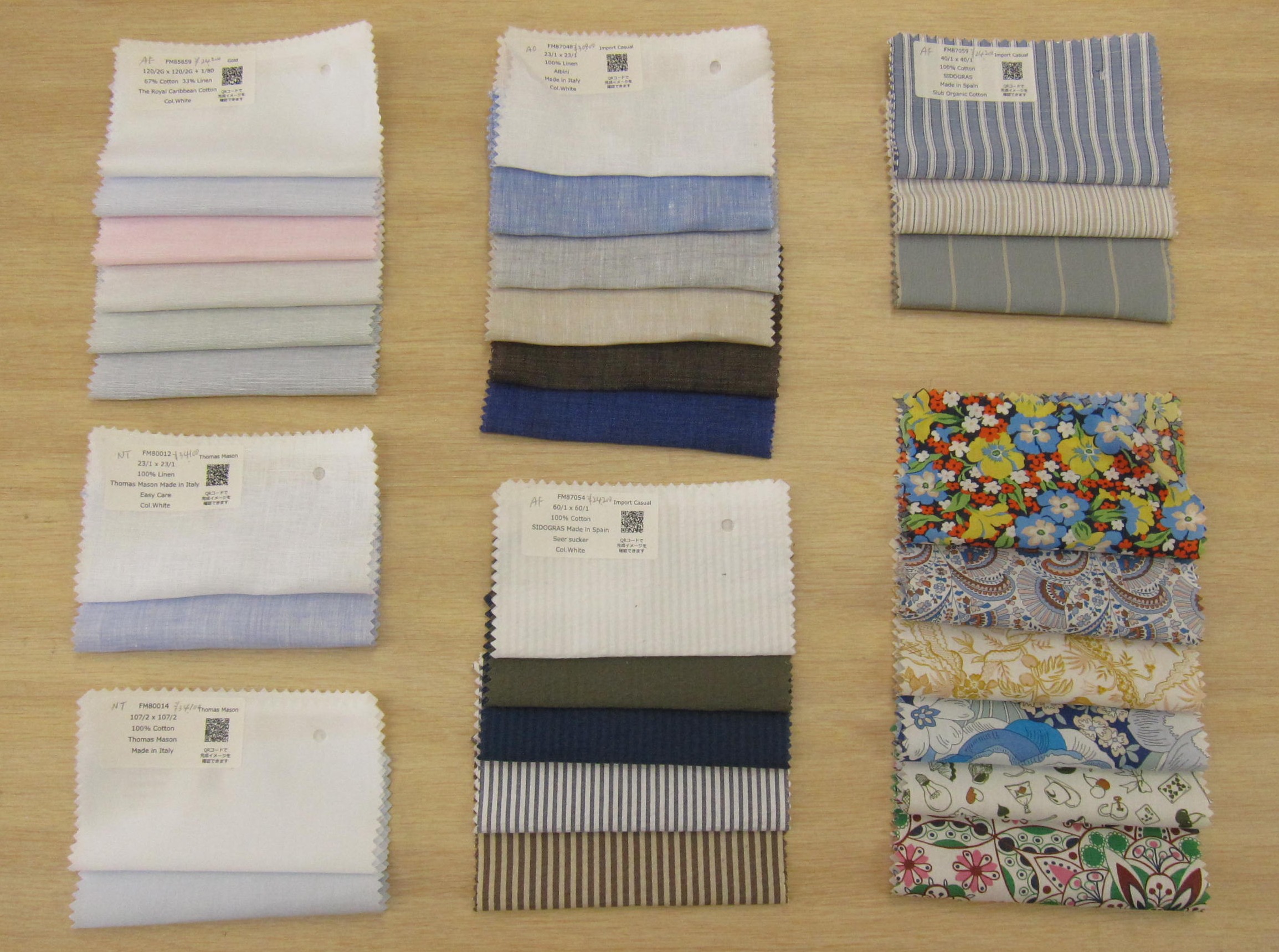 80%wool20%linenの組成で、織り方の違いで2種類、モックレノ5色、ブロークンツイル18色です。