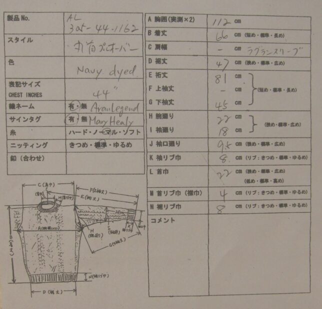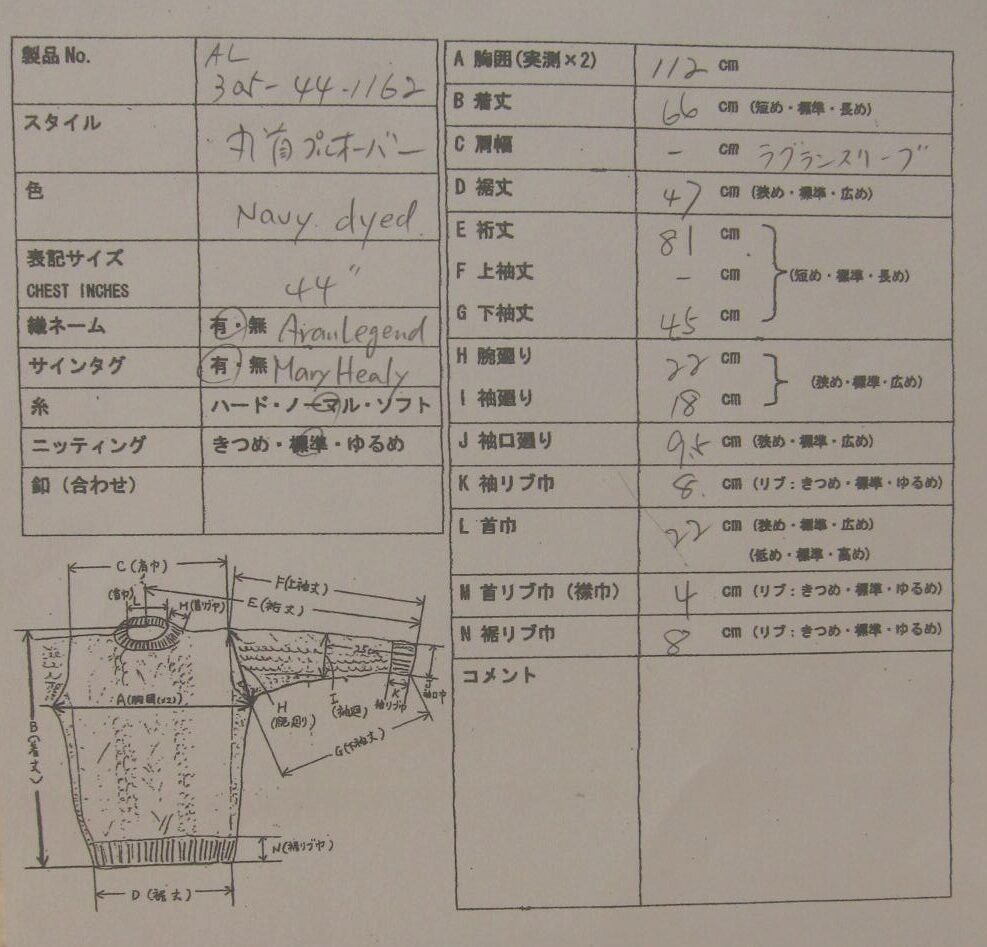 *アランセーター在庫一覧表(アランレジェンドAran Legend)
