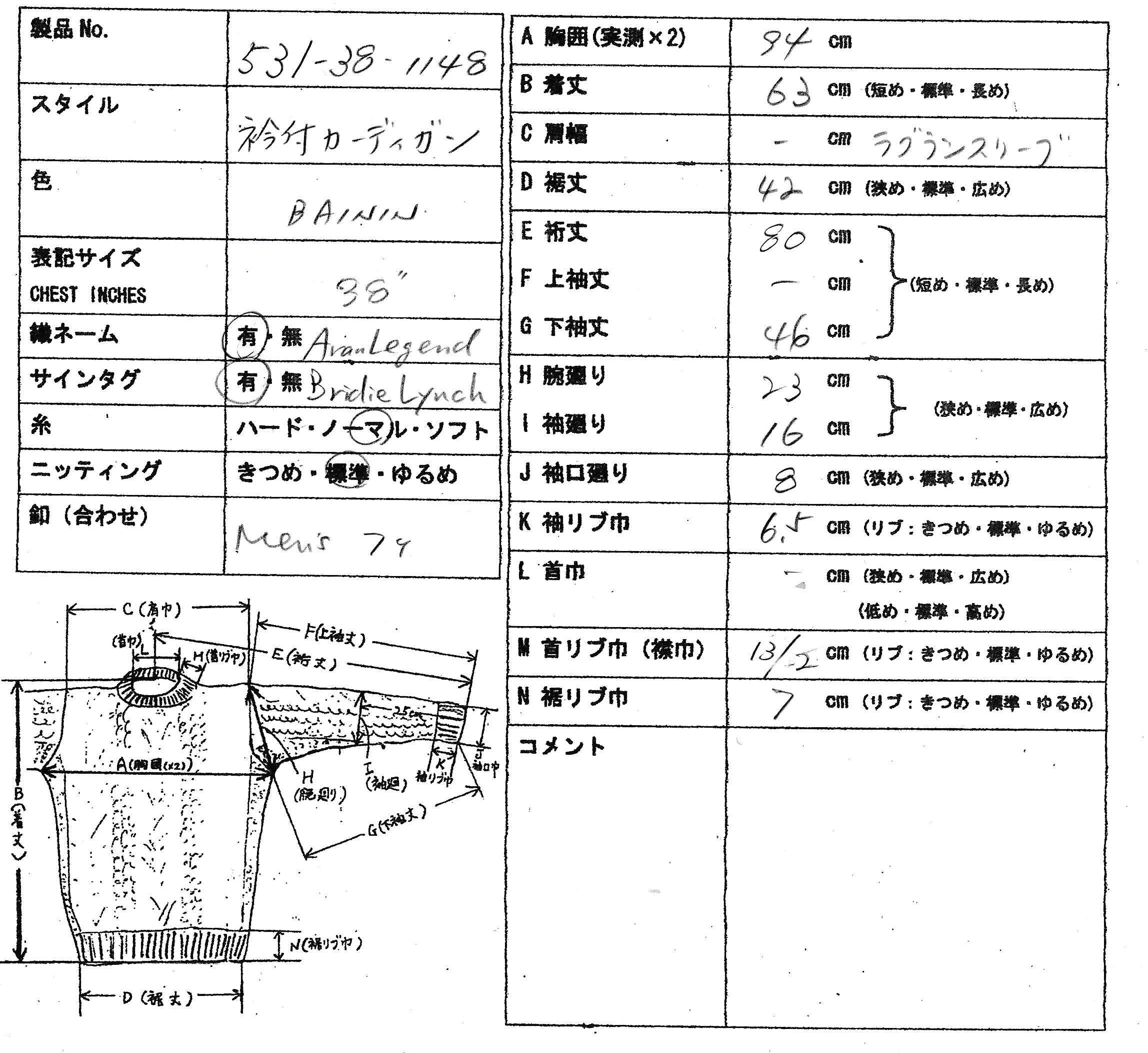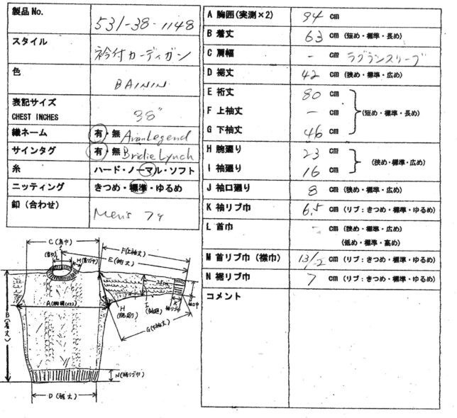 *アランセーター在庫一覧表(アランレジェンドAran Legend)