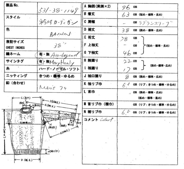 *アランセーター在庫一覧表(アランレジェンドAran Legend)