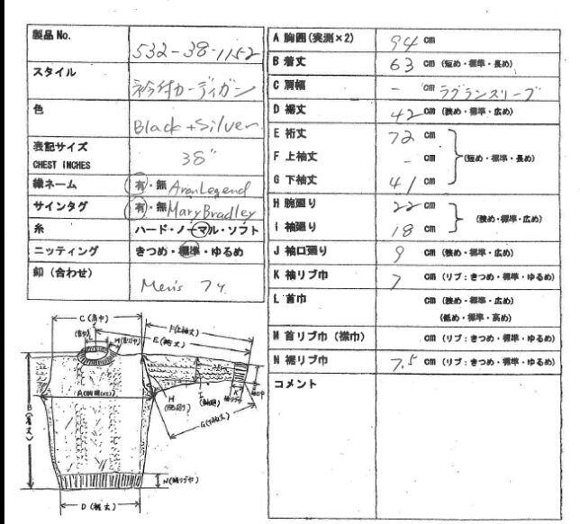 *アランセーター在庫一覧表(アランレジェンドAran Legend)