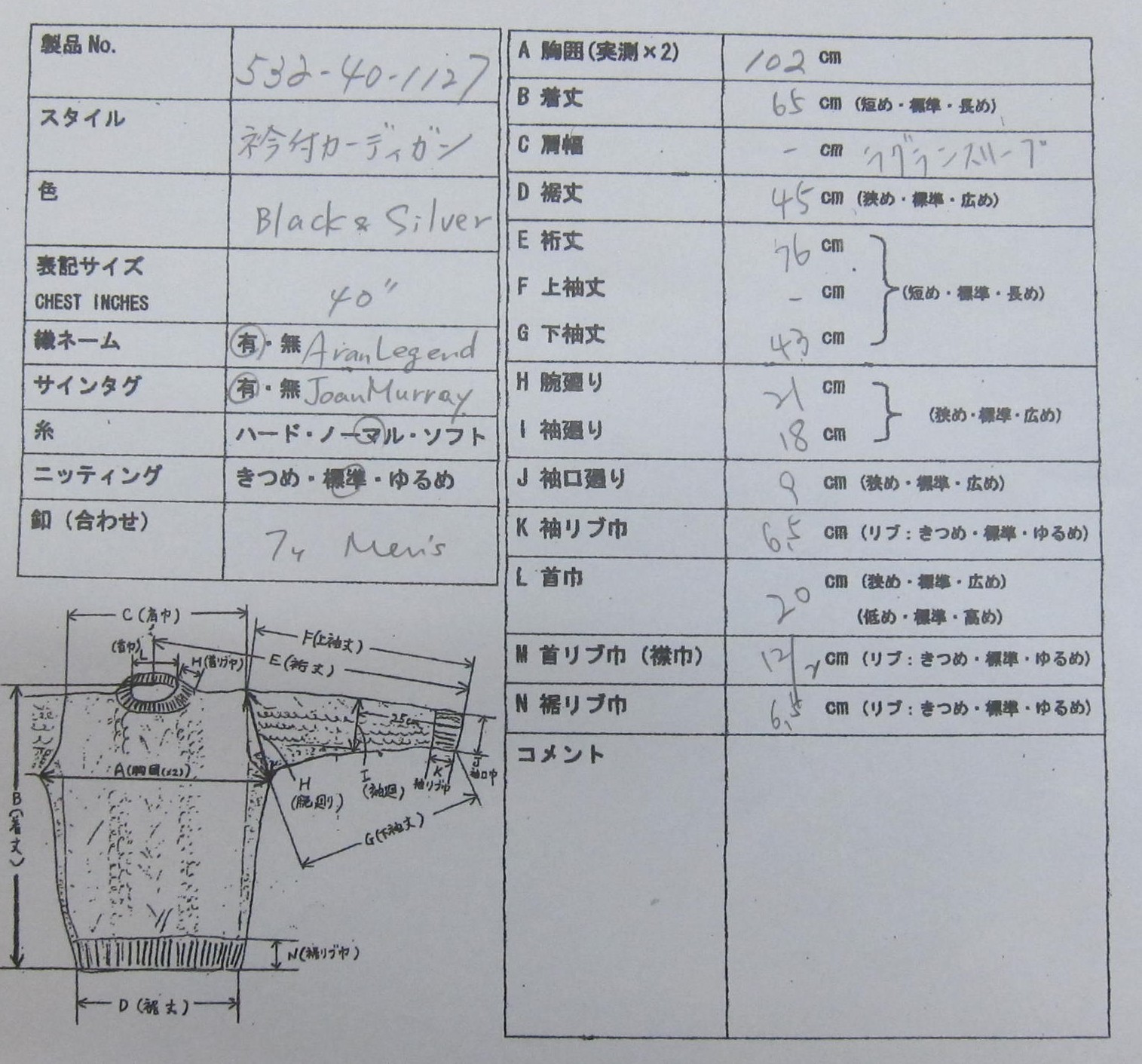 *アランセーター在庫一覧表(アランレジェンドAran Legend)
