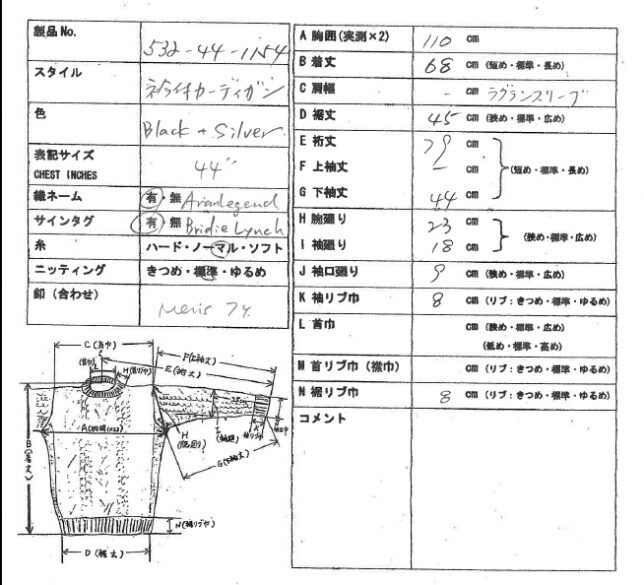 *アランセーター在庫一覧表(アランレジェンドAran Legend)