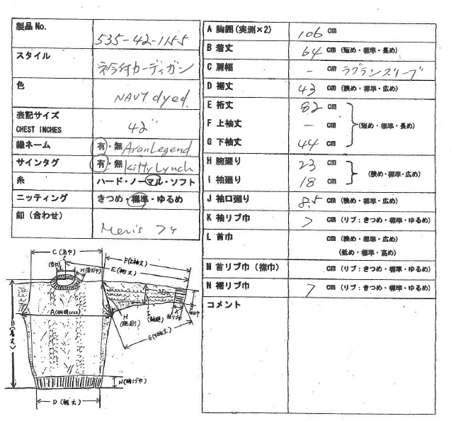 *アランセーター在庫一覧表(アランレジェンドAran Legend)