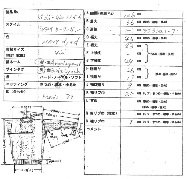 *アランセーター在庫一覧表(アランレジェンドAran Legend)