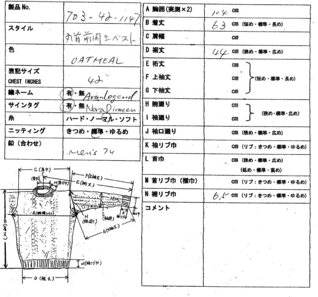 *アランセーター在庫一覧表(ゴールウェイウールGalway Wool)