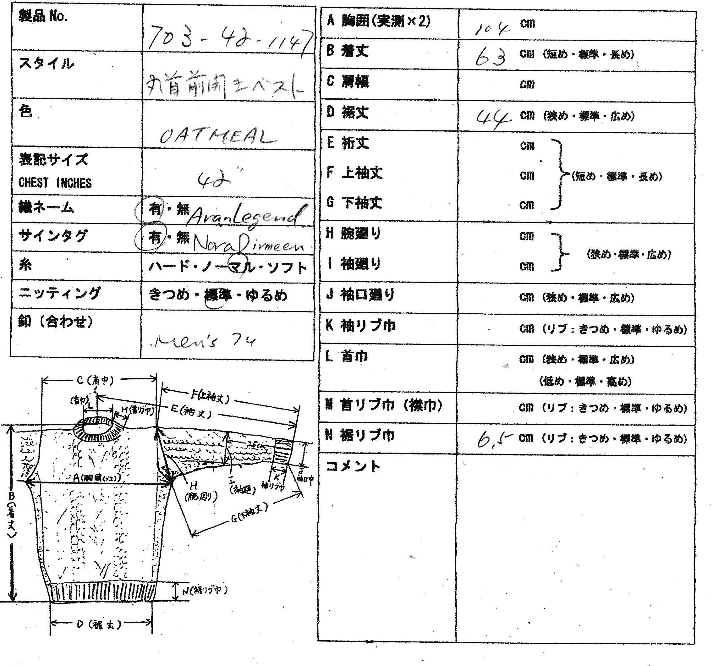 *アランセーター在庫一覧表(アランレジェンドAran Legend)