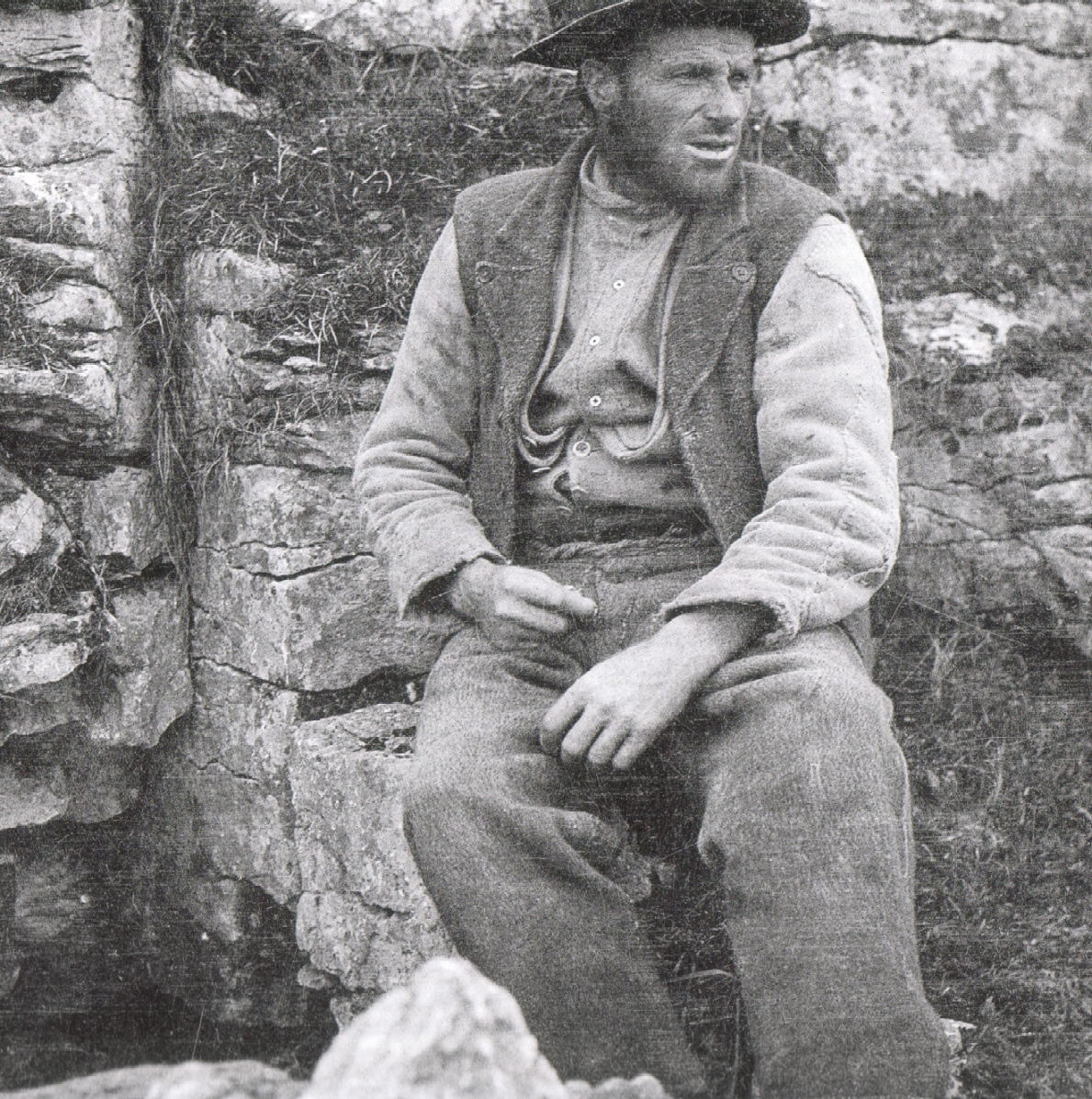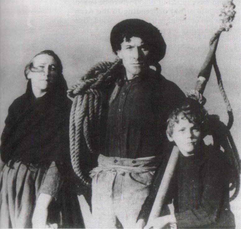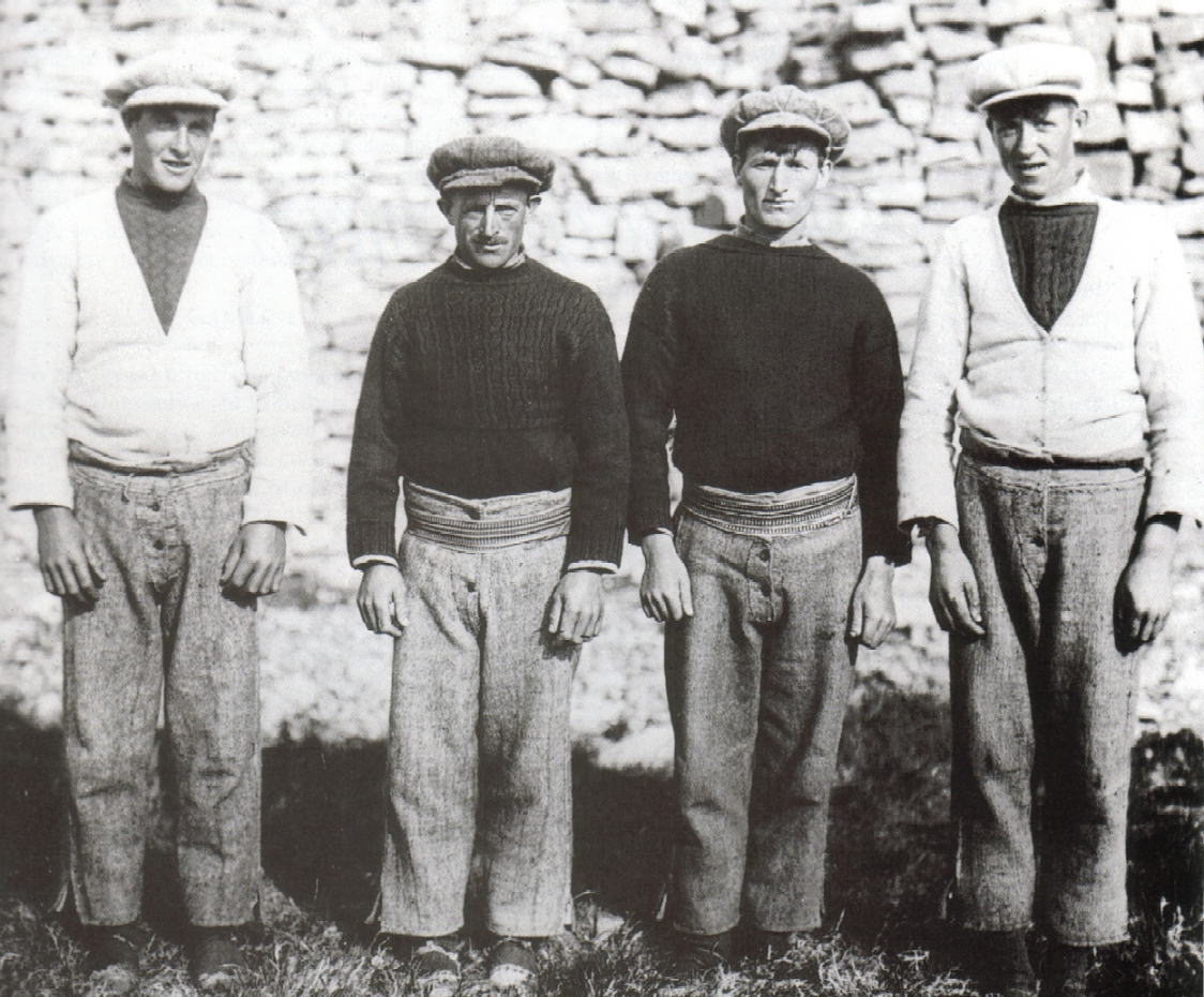 今から130年ほど前、時は20世紀を迎えたばかりの頃の話です。シングのイニシマン(一番小さな島)での長期滞在が終わる時期と重なります。一番大きな島イニシモアには殖産興業のための漁業基地が造られ、そこにはスコットランドからやって来た漁師たちの家族が多く出入りしていました。当時の海の男のセーターといえばガンジーセーターです。