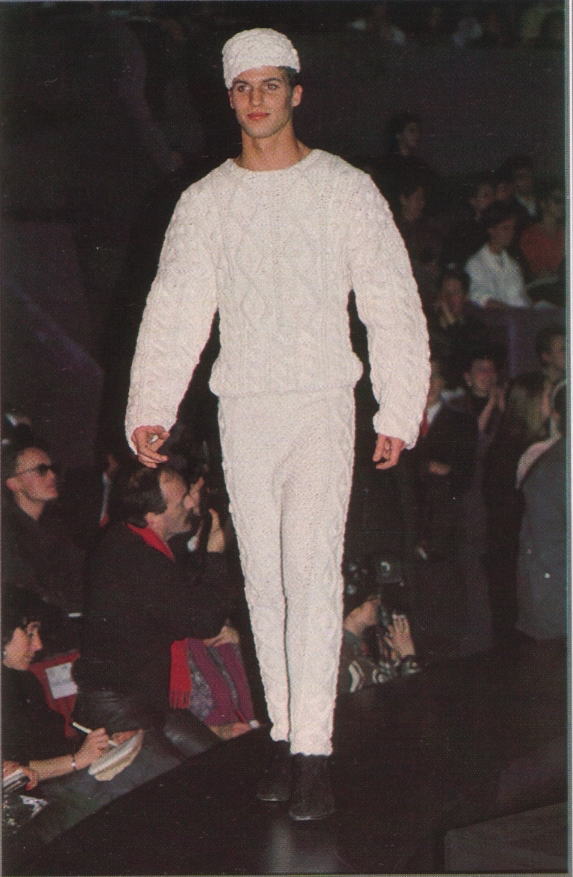 1985年パリのデザイナー、ジャンポール・ゴルチェはセーター、スラックス、帽子、すべて白のアランニットというコレクションを発表しました。こんな注釈が付けられています。「溺れ死んでもすぐに身元の分かるスタイル」。