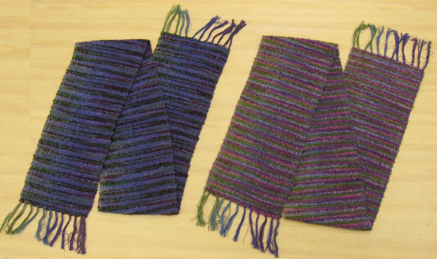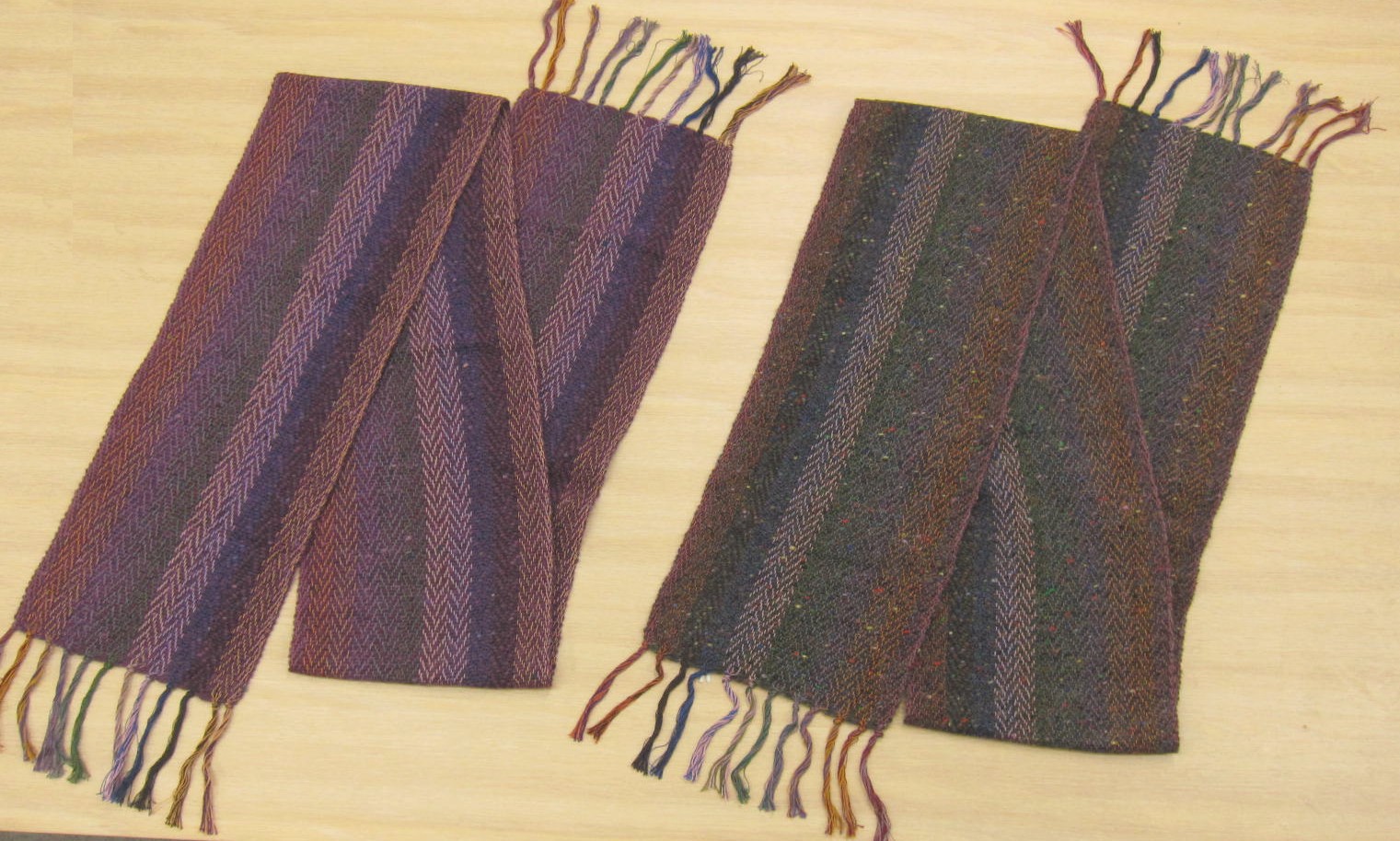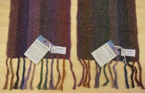 welt(ヨコ糸)は、手染めのブクレウールで、左がルピナス(マメ科・藤の仲間)、右がラベンダーです。