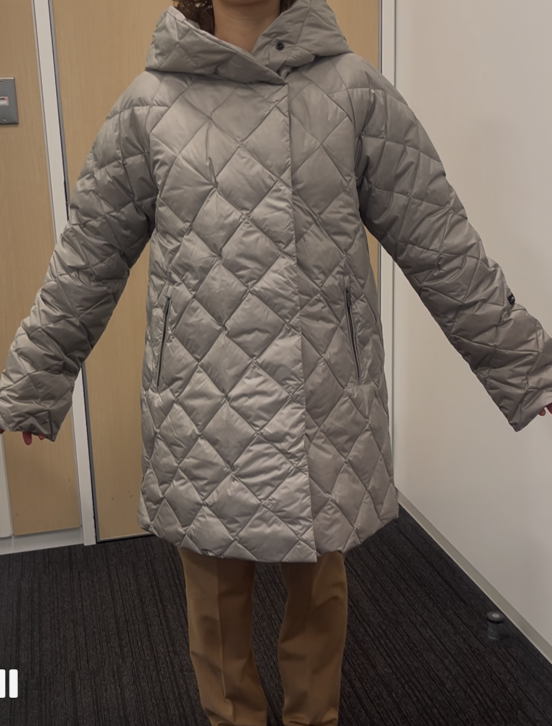 シャンペン色を優先してサンプルを取り寄せたので、モデルが着ているのはMです。本来ならXSの体格ですからふた周り大きいです。袖も本来折り返すようになっていますが、それに気が付かずに撮影してしまいました。