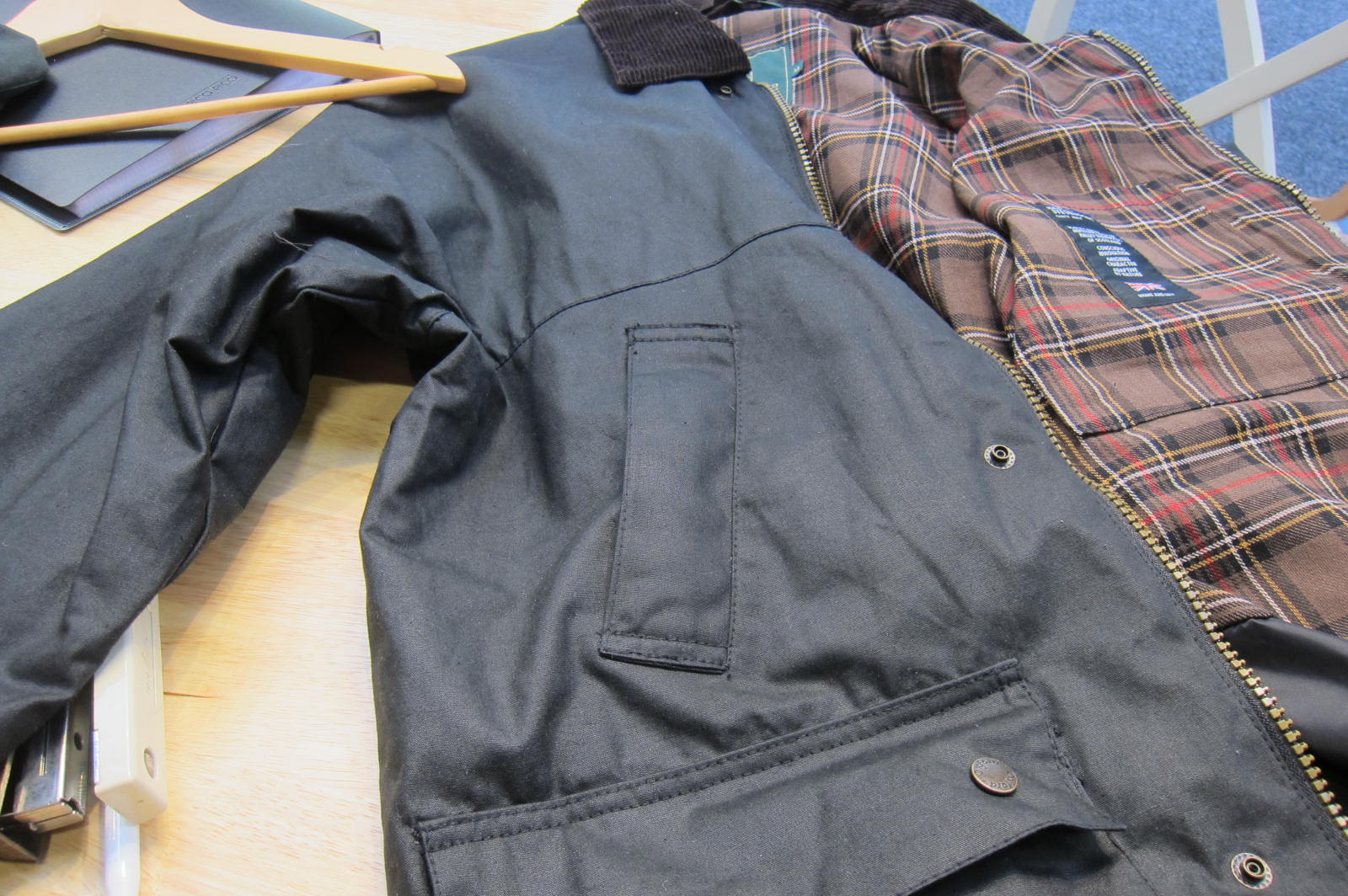 ワックスドコットンは、英国Hally Stevenson社製。取り外し式のフード付き。