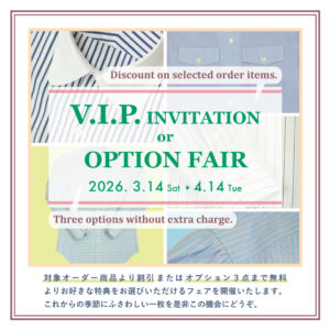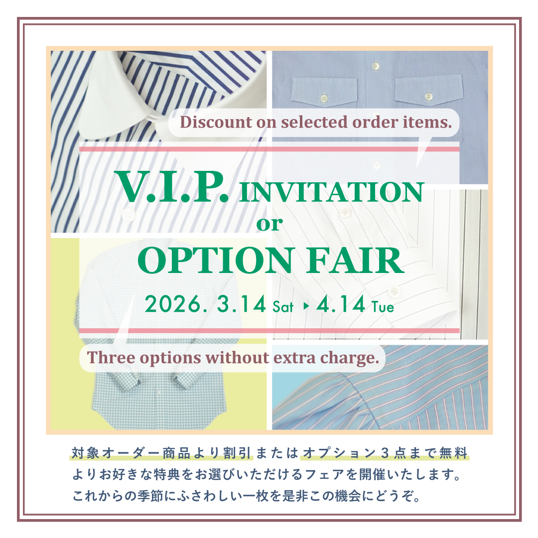 シャツを作ろう!! 2つの催事を統合してロングランに。いい生地を3,000円off または オプション3つ無料。選んでください。3/15(日)から4/13(月)まで。先行予約受け付けます。