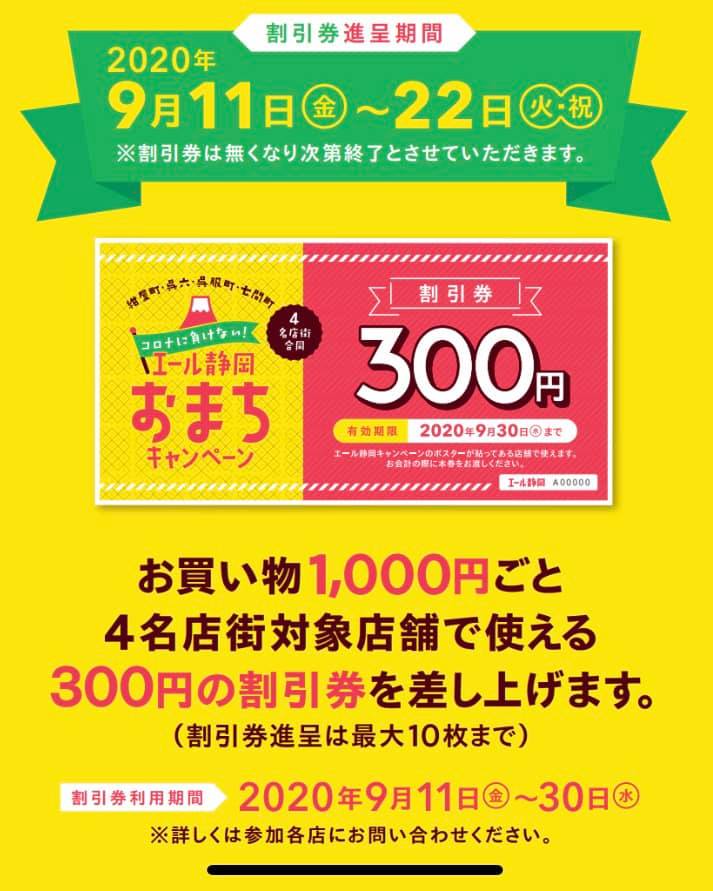 エール静岡・おまちキャンペーン。本日より。もちろん当店も参加。4商店街の合同事業で、結構お得でございます。