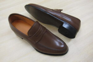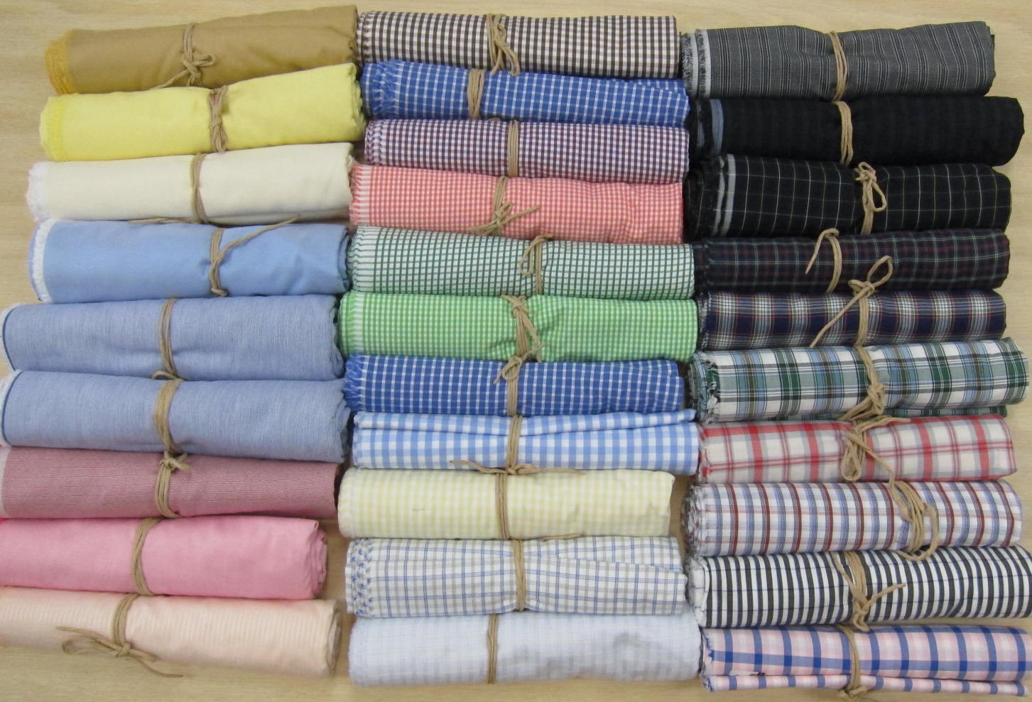 まず生地です。普段は小さな生地見本からの選択ですが、エコノミーのときは紐で巻いてある実際のシャツ生地約300種から選んでいただきます。強いストライプやチェックなど、小さい見本ではわかりにくい色柄も現物の生地を広げて確認できます。これらの生地は、廃番処分になったものやファクトリーが様々な事情から生地メーカーから低価格で仕入れたもの、大量発注でコストを下げられたもの、などなど、普段とは異なる生地群です。品揃えはファクトリーの担当者に任せていますが、中には掘り出し物も入っていることがあります。この、生地を漁る、的な作業はエコノミーの一番面白いところかもしれません。
