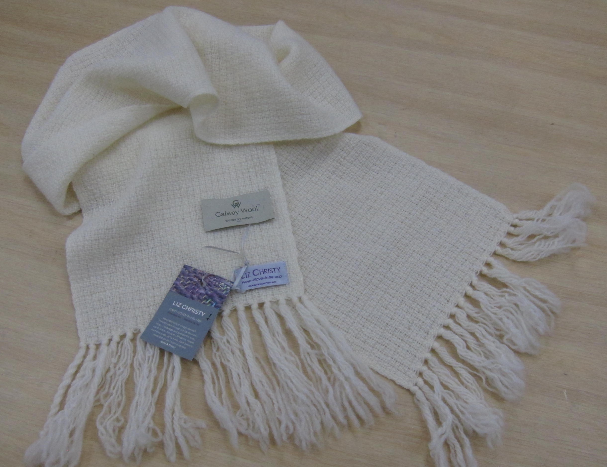 アイルランド原種の羊から採れるGALWAY WOOLで織ったバイニン(ナチュラルホワイト)のスカーフ
