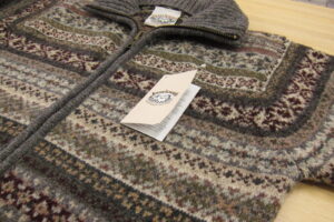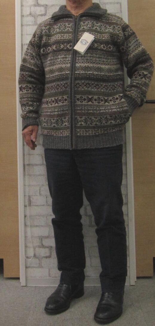 ただ、いつも言うように、ココのユニークな特徴として、二回りほど大きく編んでおいて、洗って縮ませて手編みのような立体的な風合いを醸し出す、ということから、仕上がりサイズは他社のセーターに比べてかなり不安定です。あくまでも標準的な目安だとお考えください。