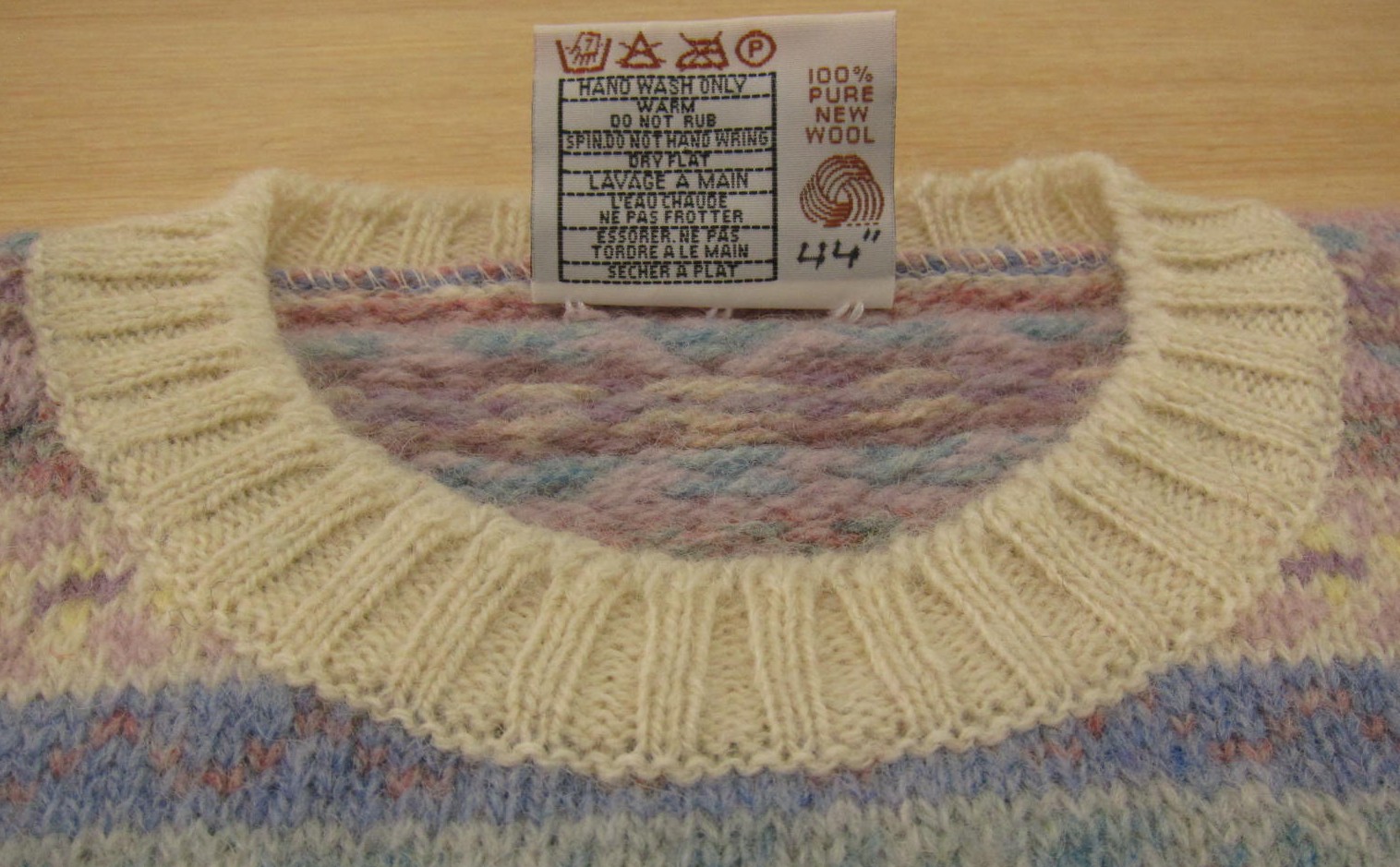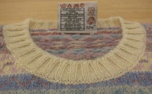 サイズはブランドラベルの裏のウールマークの下に書いてあります。