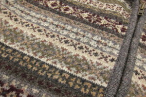 いいかい、Jack、うちのジャカード編みのマシンは14色セットできるんだ。で、安全のために最端の一色分を空ける、だから13色。私驚いて曰く、たった13色で何十色もあるかのような多彩なパターンを組み上げられるのか、すごいね。Peterウィンクして曰く、それもパタンナーの腕の見せ所なんだよ。