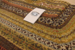一昨年この精緻な新柄と斬新なカラーリングを考えた企画担当者は、この島で生まれ育った30代の若い女性スタッフ。英国の専門学校を出て就活中にコロナになったため生まれ故郷のこの島に戻ってきたそう。デザイナーでもありプログラミングもできて、とても貢献している様子。会ってみたいな。