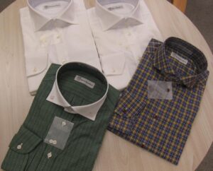 まずは、夏物の終わり、というか、7月開催の「シャツを作ろう!!~エコノミー・サービス」の仕上がりが9月に届きまして、それを紹介します。細かい解説は省きますのでご了承ください。