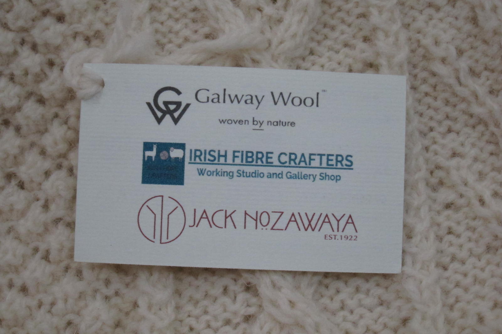 アイルランド純血原種の羊ゴルウェイシープは従来もっぱら食用に供されてその白いウールは流通ルートが確立できてなかったことからやむなく廃棄されてきましたが、このゴルウェイシープを飼育する40数カ所の小規模な牧場を組合組織化し、品質管理を徹底した上でブランドウールとして確立させたのがゴルウェイウールであり、2022年から市場に出ることになりました。ラノリンとエアーを豊富に含んだ弾力にあふれる、素朴ですがとても魅力的なウールです。当社はいち早くこのウールに着目しファームを訪れ直談判。ゴルウェイウールで編まれたアランセーターを商品化することに成功しました。ウールからセーターに製品化するコーディネートはゴルウェイ郊外の手芸店アイリッシュ・ファイバー・クラフターズと協業、新しい切り口で始まる21世紀からの画期的なアランセーターです。